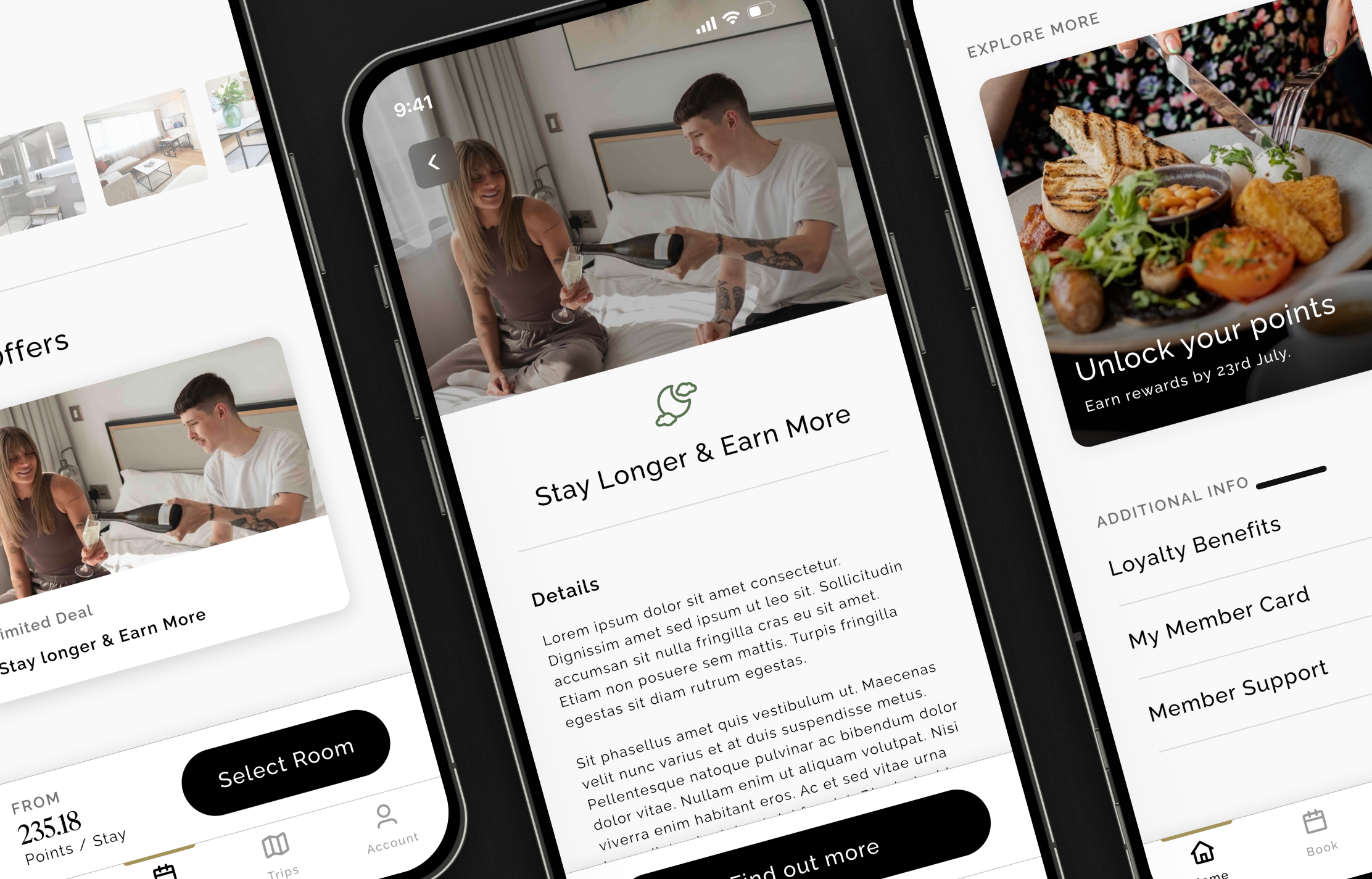 The direction focused on building an experience that extends beyond a single booking. Instead, the aim was to create something that encourages users to return, by recognising repeat behaviour and offering value over time. This meant connecting moments across the journey before a stay, during the visit, and afterwards. Using those touchpoints to reinforce loyalty.