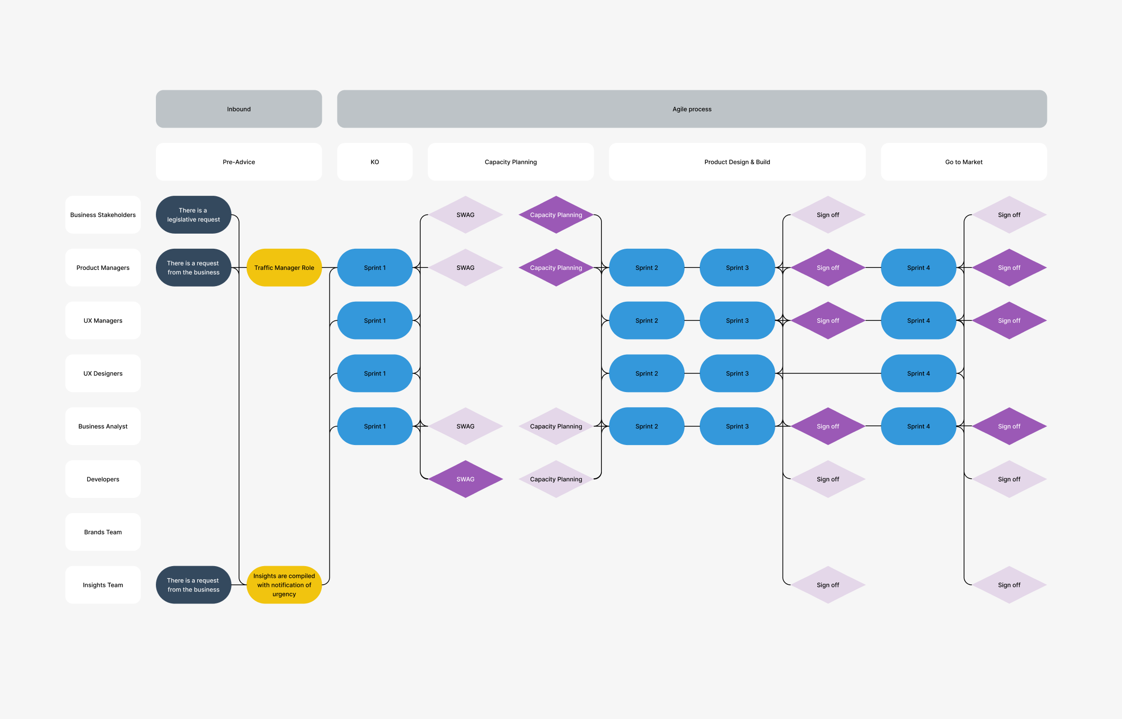 At this stage, the focus shifted to how the design system would operate across the organisation. We mapped how components moved through the system, from creation and review through to release and adoption. This helped clarify ownership and introduced a more structured way of managing change.