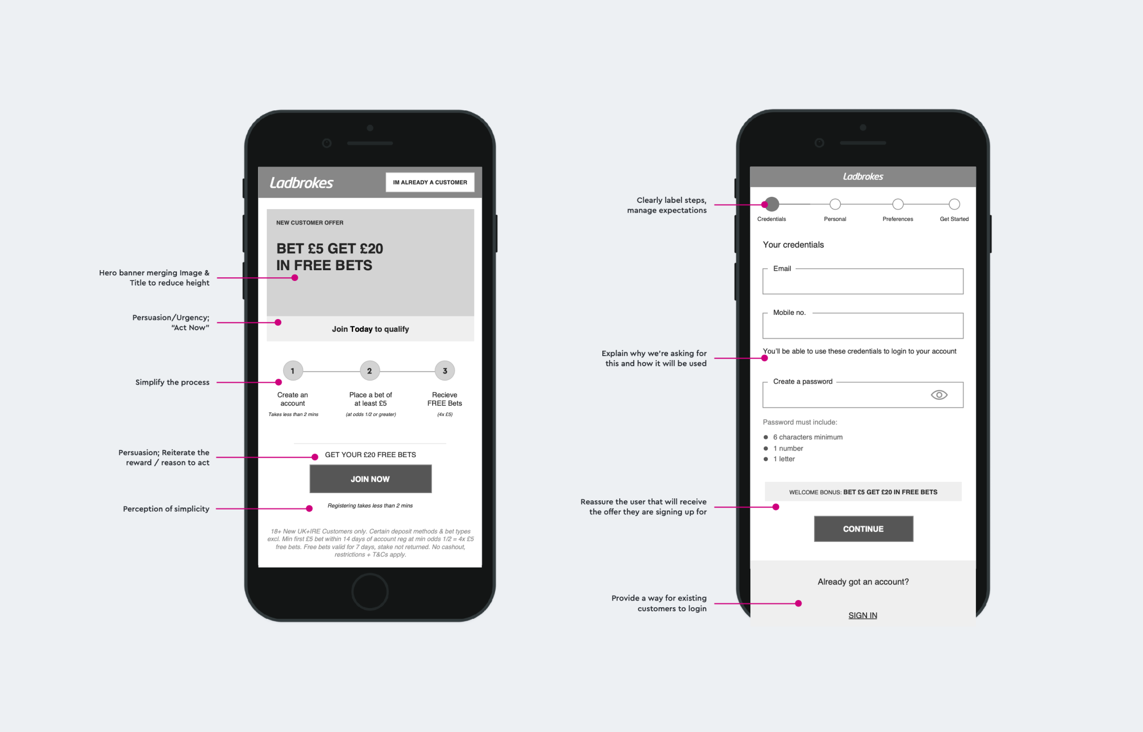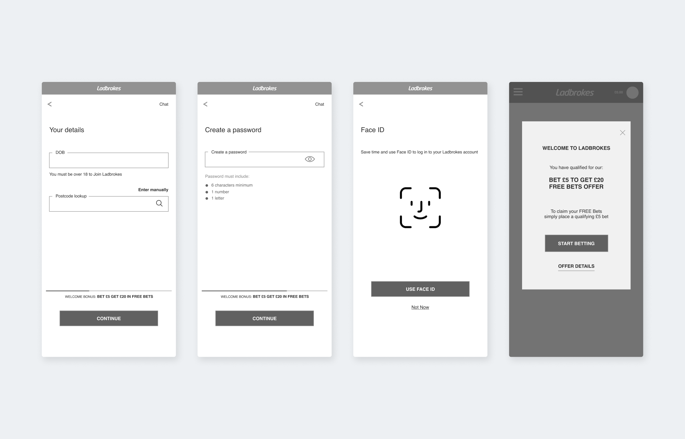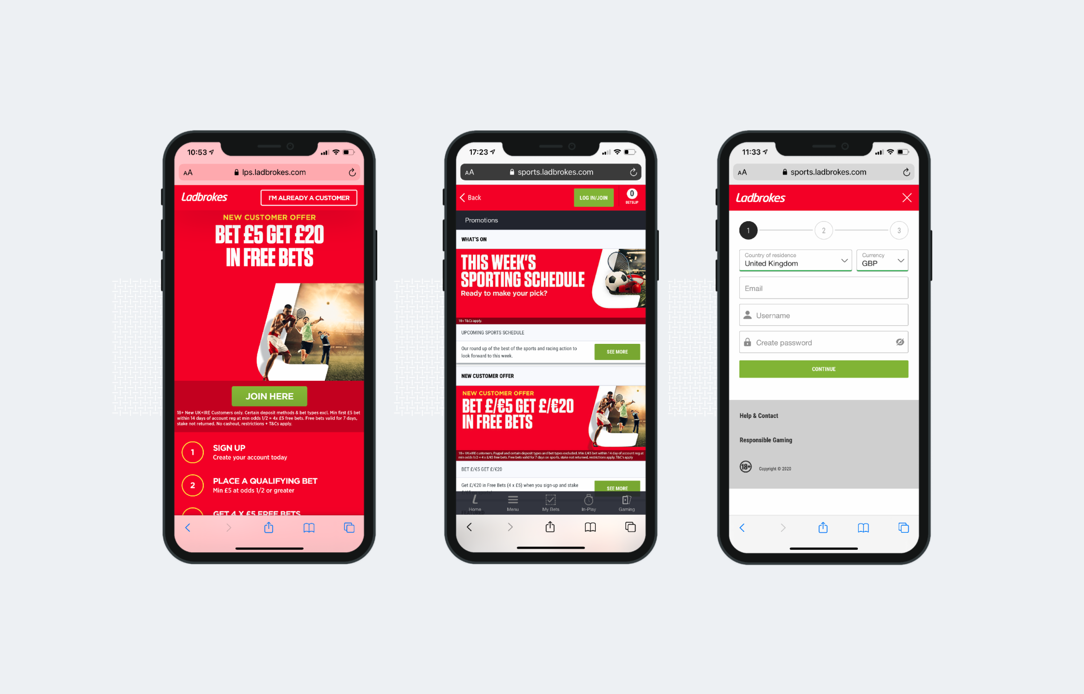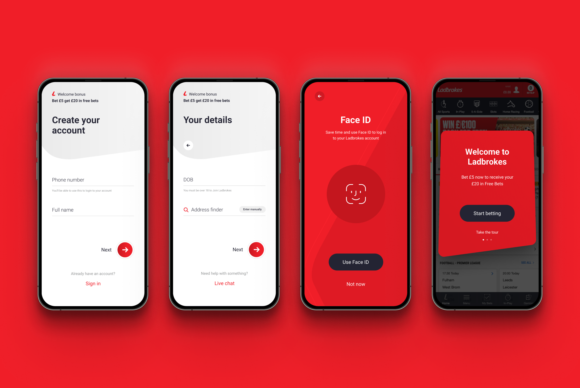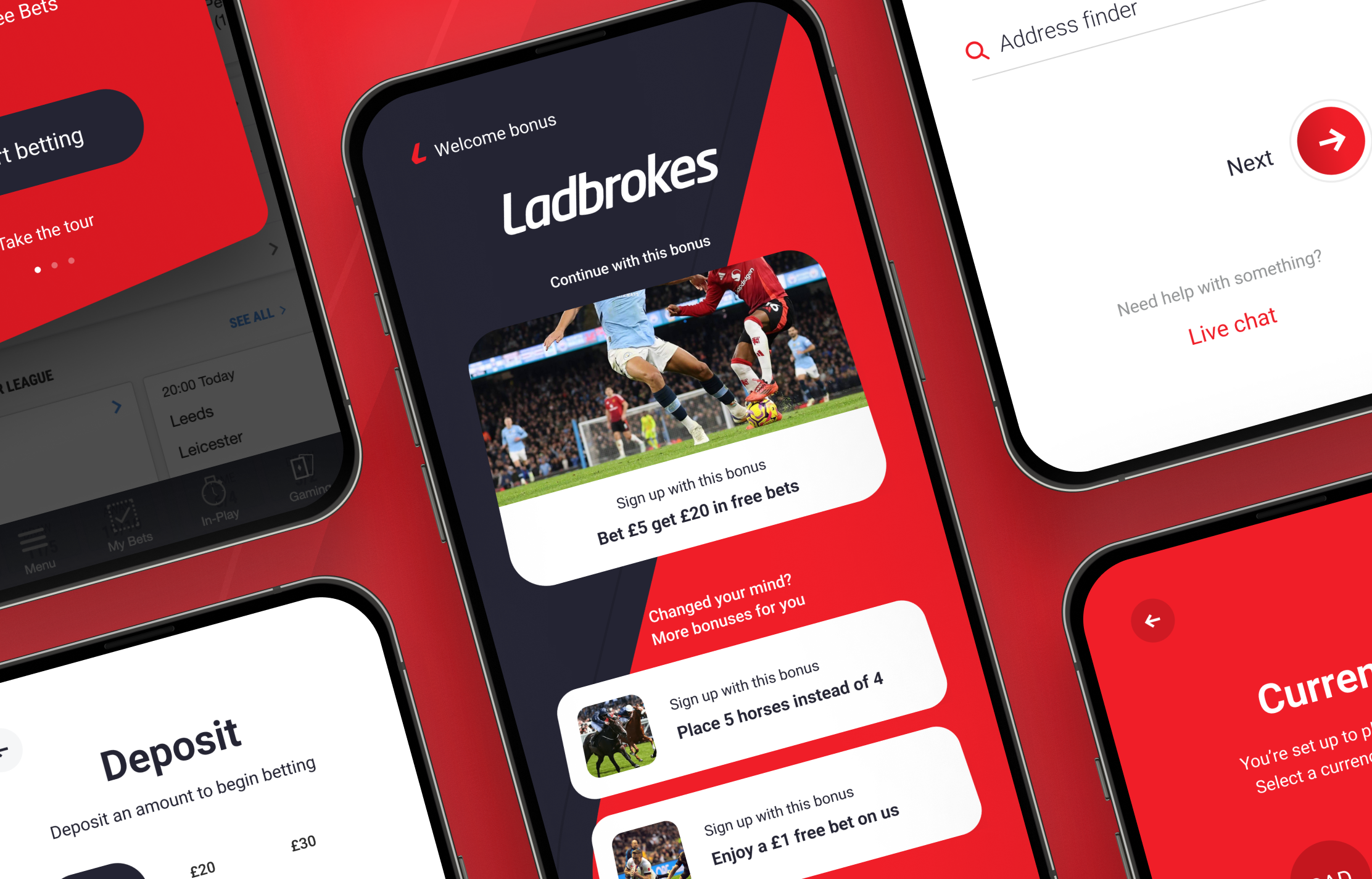 To review and improve the Ladbrokes onboarding experience by identifying usability issues, reducing friction across the journey, and improving conversion from sign-up through to first deposit and bet.